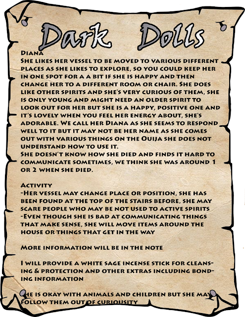 Haunted Doll Diana needs a loving home, young spirit, paranormal, positive